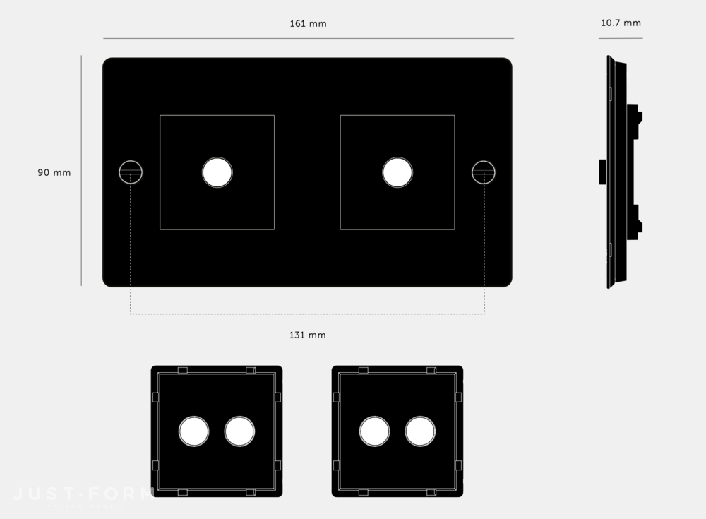 Горизонтальная двухпостовая рамка Buster + Punch 2G Wall Plate / Horizontal / With Infills / Black выполнена из металла и покрыта черной полуматовой эмалью. Рамка имеет центральные вкладки и предназначена для установки механизмов с тумблерами и регуляторами (выключатели, переключатели, диммеры). В сочетании с модулями из коллекции EU Electricity рамки позволяют скомпоновать устройство с произвольным набором выключателей, диммеров, розеток или других механизмов. Дополнить композицию помогут декоративные винтовые головки в пяти отделках. Совместима с монтажными коробками европейского стандарта, поставляемыми отдельно. Образцы рамок Buster + Punch представлены в нашем шоуруме.
