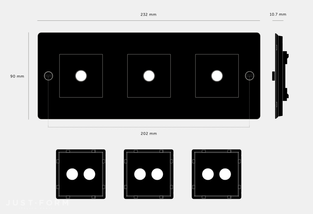 Горизонтальная трехпостовая рамка Buster + Punch 3G Wall Plate / Horizontal / With Infills / White выполнена из металла и покрыта белой полуматовой эмалью. Рамка имеет центральные вкладки и предназначена для установки механизмов с тумблерами и регуляторами (выключатели, переключатели, диммеры). В сочетании с модулями из коллекции EU Electricity рамки позволяют скомпоновать устройство с произвольным набором выключателей, диммеров, розеток или других механизмов. Дополнить композицию помогут декоративные винтовые головки в пяти отделках. Совместима с монтажными коробками европейского стандарта, поставляемыми отдельно. Образцы рамок Buster + Punch представлены в нашем шоуруме.