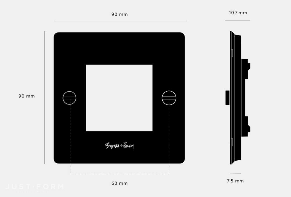Однопостовая рамка Buster + Punch 1G Wall Plate / Horizontal / No Infills / Steel выполнена из нержавеющей стали с логотипом или без. Рамка не имеет центральных вкладок и предназначена для установки механизмов без тумблеров и регуляторов (розетки, разъемы и т.д.) В сочетании с модулями из коллекции EU Electricity рамки позволяют скомпоновать устройство с произвольным набором выключателей, диммеров, розеток или других механизмов. Дополнить композицию помогут декоративные винтовые головки в пяти отделках. Совместима с монтажными коробками европейского стандарта, поставляемыми отдельно. Образцы рамок Buster + Punch представлены в нашем шоуруме.