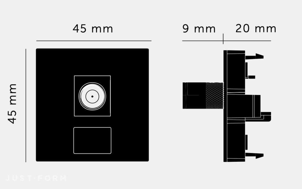 ТВ модуль Buster + Punch TV Module / 45 mm устанавливается в рамки Wall Plates / No Infills коллекции EU Electricity и позволяет скомпоновать устройство с произвольным набором выключателей, диммеров, розеток или других механизмов. Дополнить композицию помогут декоративные винтовые головки в пяти отделках. Модуль TV / SAT / Cable с разъёмом TV/SAT – гнездо типа F. Совместим со всеми коаксиальными системами передачи сигнала. Черный или белый цвет.