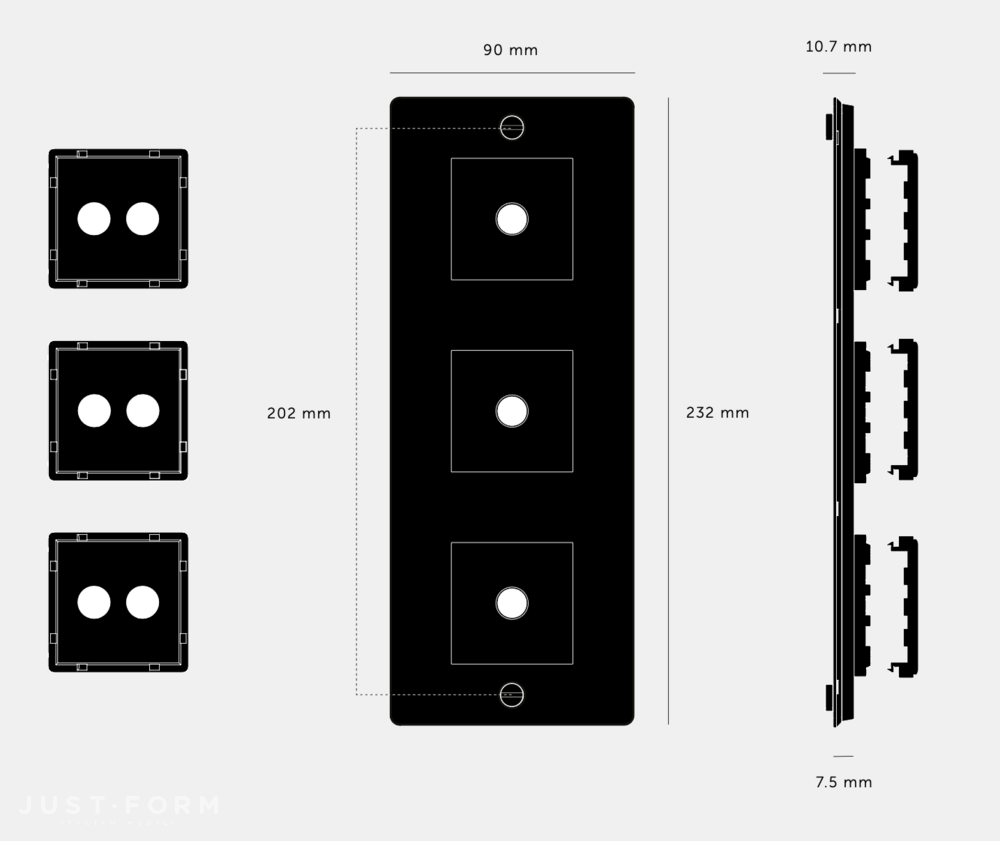 Вертикальная трехпостовая рамка Buster + Punch 3G Wall Plate / Vertical / With Infills / White выполнена из металла и покрыта белой полуматовой эмалью. Рамка имеет центральные вкладки и предназначена для установки механизмов с тумблерами и регуляторами (выключатели, переключатели, диммеры). В сочетании с модулями из коллекции EU Electricity рамки позволяют скомпоновать устройство с произвольным набором выключателей, диммеров, розеток или других механизмов. Дополнить композицию помогут декоративные винтовые головки в пяти отделках. Совместима с монтажными коробками европейского стандарта, поставляемыми отдельно. Образцы рамок Buster + Punch представлены в нашем шоуруме.