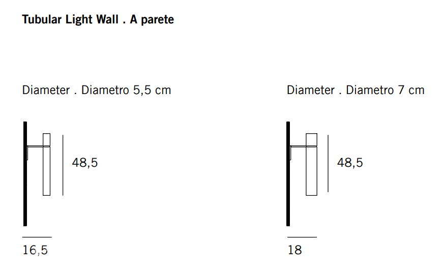 Бра Tubular Light Wall излучает свет в двух направлениях - вверх и вниз. Корпус выполнен из отполированной вручную латуни. Источники света светодиоды. Выпускается в двух версиях разного диаметра - 5,5 и 7 см. Источник света: 2 х 3 Вт; 552 лм; 3000 К.